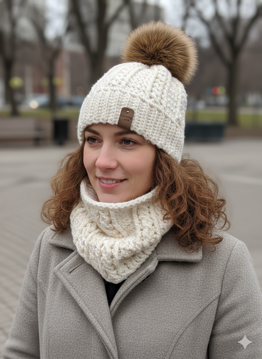 Fabriquée en laine d'agneau super douce, elle est dotée d’un pompon de fourrure amovible.